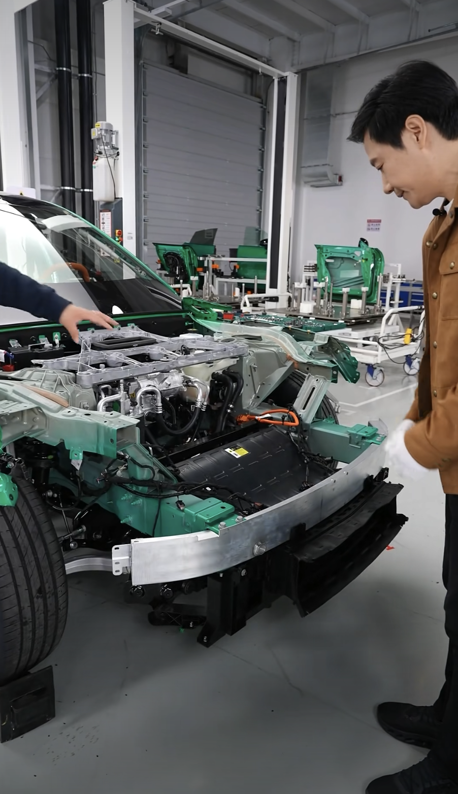小米汽车相关负责人从车身颜色、座椅、玻璃、防护性能等多方面展示了该车型的特别之处,并重点展示了门锁系统的三重电源冗余设计:在极端碰撞场景下,即使主副电源失效,还有专为门锁配备的备份电池,确保车门机械解锁功能始终有效。此外,小米还展示了2200MPa超强钢防滚架、74.4%铝合金前防撞梁、800V高压平台等核心技术。
