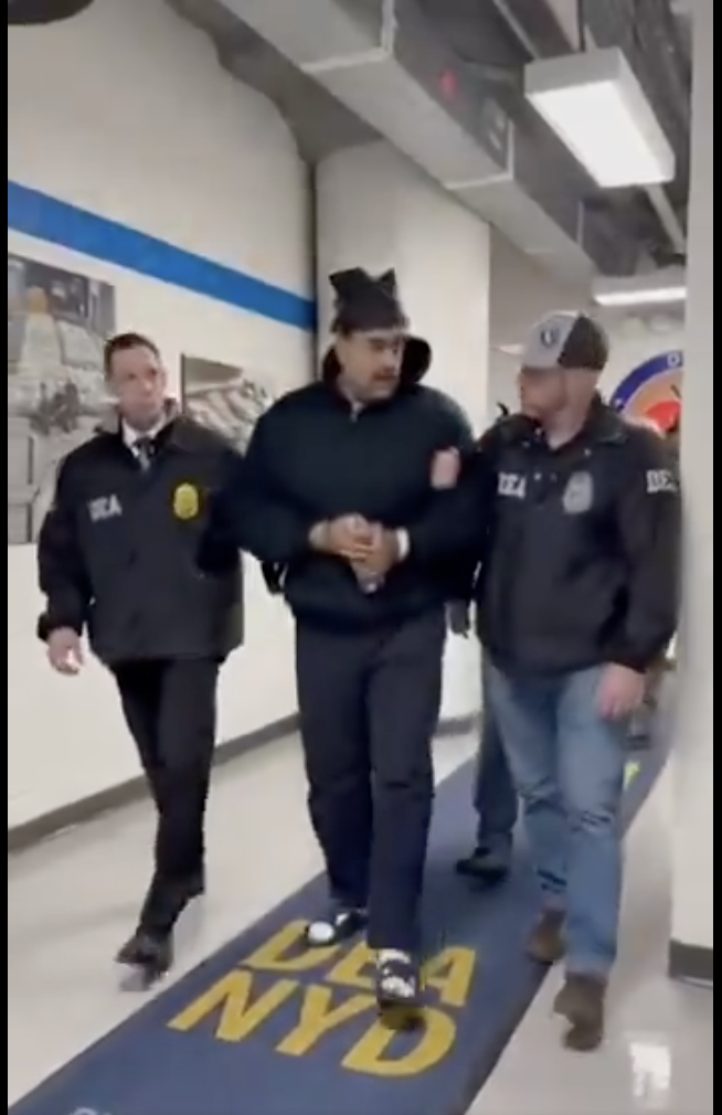据悉,当晚马杜罗乘直升机抵达纽约曼哈顿,车队首先从直升机场驶往曼哈顿的美国缉毒署(DEA)办公室,最终目的地是布鲁克林的拘留中心。