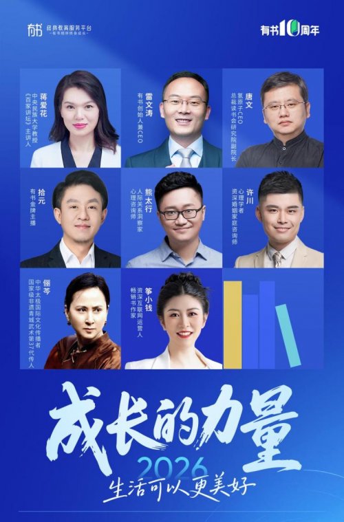 在成立十周年之际,国内领先的终身成长平台“有书”于12月22日举办主题为《成长的力量:2026,生活可以更美》的十周年特别直播活动。创始人兼CEO雷文涛携多位重量级嘉宾登台,共同回顾有书十年历程,并首次系统性披露未来十年的战略蓝图。品牌同步焕新Slogan:“有书相伴,人生更美”,标志着有书从“共读陪伴者”全面升级为“美好生活方式引领者”。这场长达三小时的直播全网覆盖1000万观众,不仅引发用户强烈共鸣,更在文化、教育、AI与生活方式融合领域掀起行业震动。