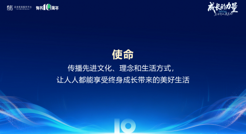 CEO雷文涛展望道:“我们希望,在十年后,当大家提到有书,就能联想到美好生活。有书能成为代表美好生活状态的一个标志性品牌。” 这一愿景,将有书的品牌定位从教育领域,拓展至更广阔的生活方式领域,迎来新十年更广阔的市场空间。
