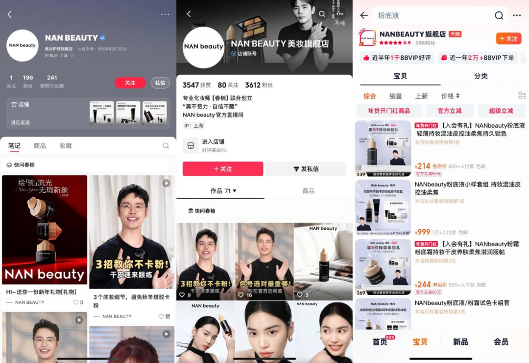 从品牌端看,NAN beauty并非临时立项。上美股份在2024年年报中首次披露该品牌,合作对象为知名化妆师春楠。春楠同时拥有明星化妆师与社交媒体IP身份,其个人账号在微博、抖音、小红书等平台累计粉丝超过360万,并长期运营化妆师培训业务。NAN beauty亦成为上美首次在彩妆品类中引入专业化妆师IP的尝试。