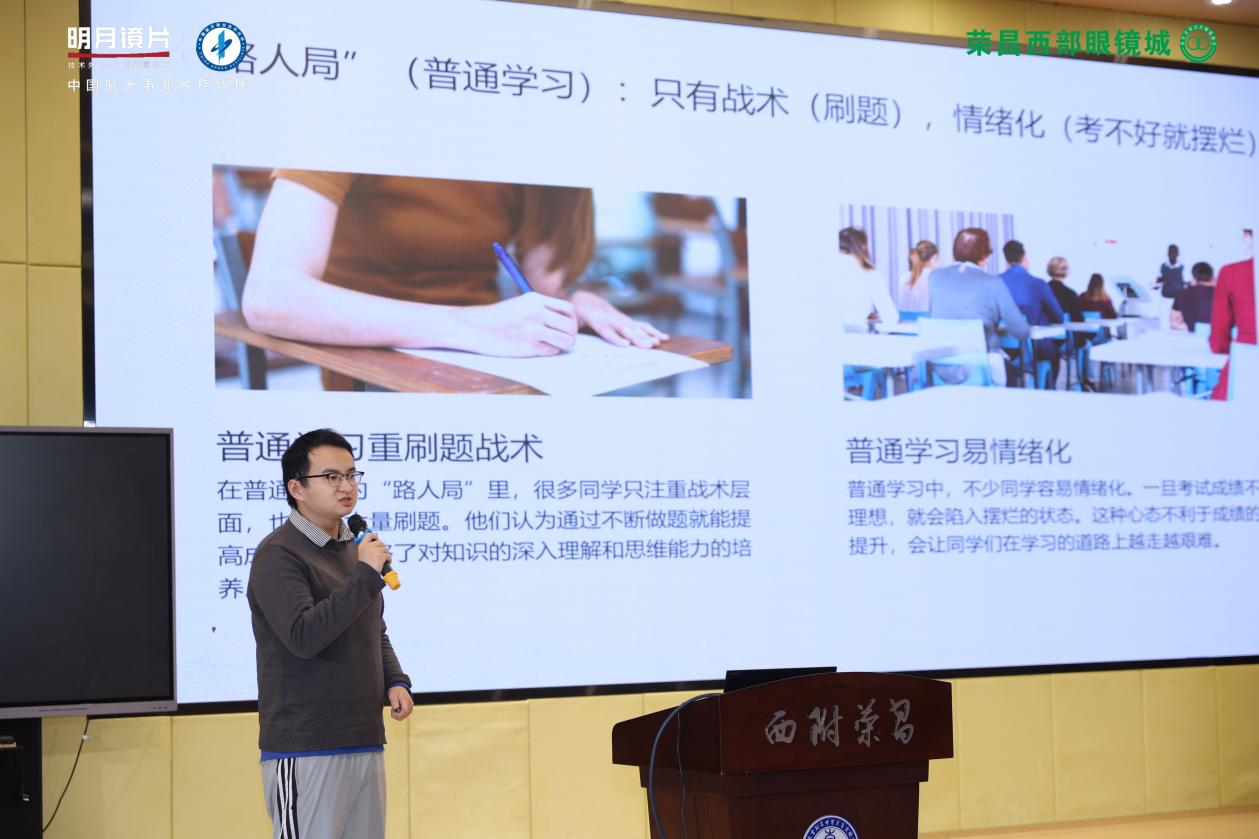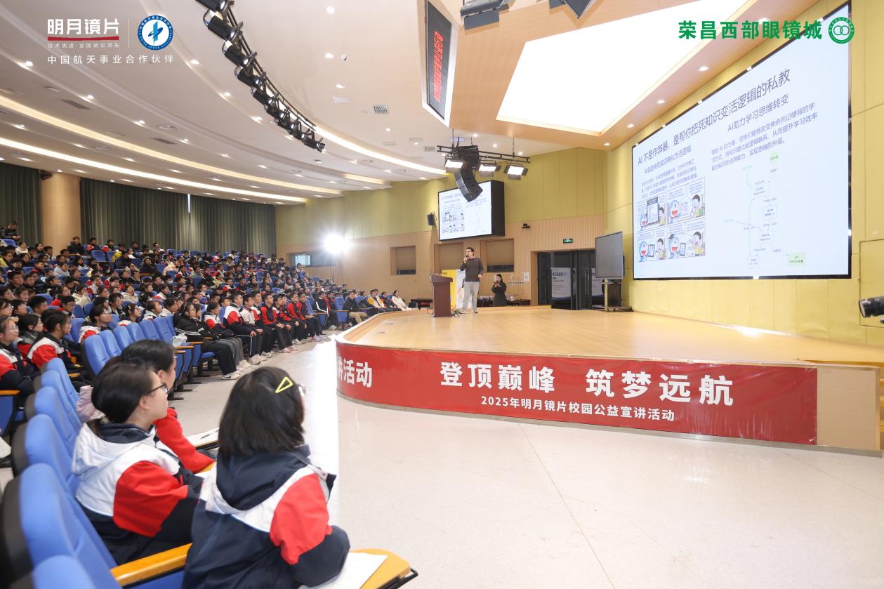 近日,明月镜片携手荣昌西部眼镜城,发起“登顶巅峰 筑梦远航”近视防控宣讲活动,共同走进重庆市荣昌区宝城初级中学、西南大学附属中学荣昌实验学校。活动邀请清北优秀学子,分享学习经验,科普近视防控知识,用实际行动守护儿童青少年视力健康。