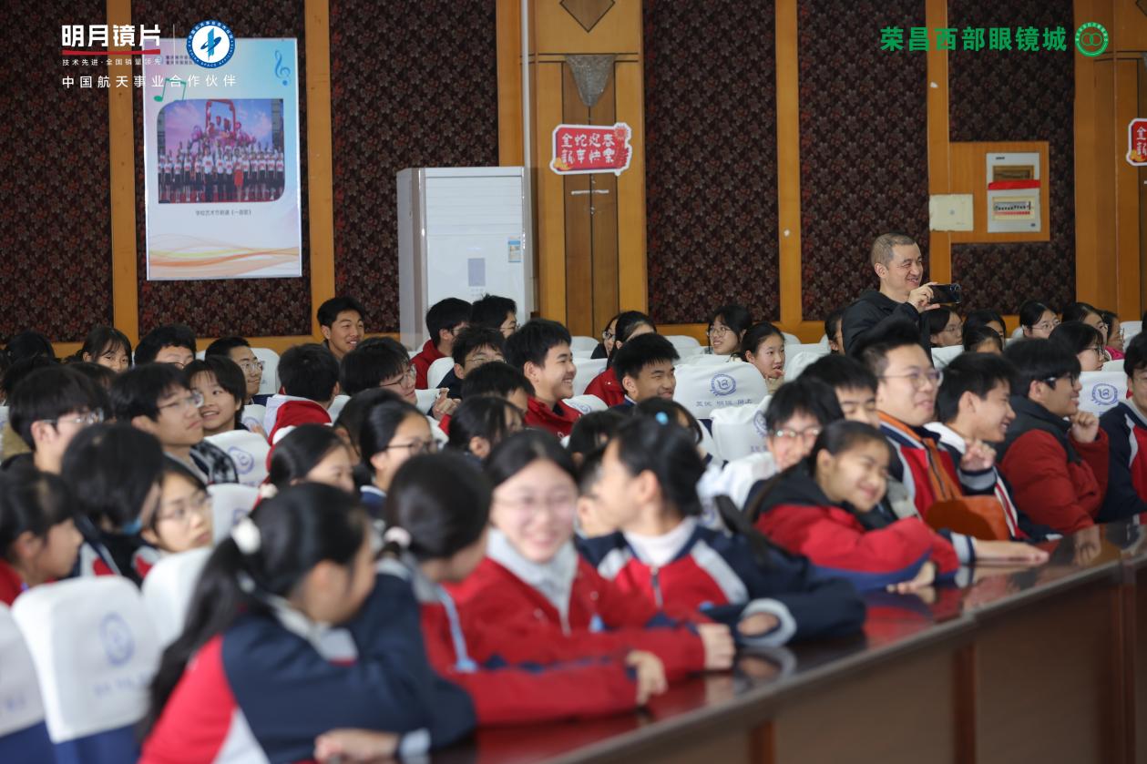 荣昌西部眼镜城一直终热心公益事业,积极参与校园近视防控科普工作,此次与明月镜片携手构开展校园公益宣讲活动。不仅让同学们了解到了科学的护眼方法,更传递了全社会对青少年成长的关爱。