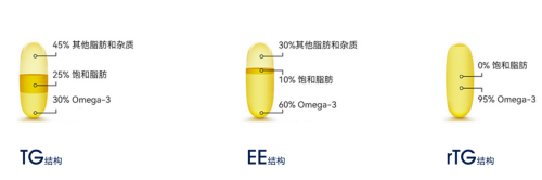 EE结构(乙酯型) | 纯度相较于TG结构更高 | 非天然形态,需在体内多步转化才能被吸收,生物利用度相对较低 |