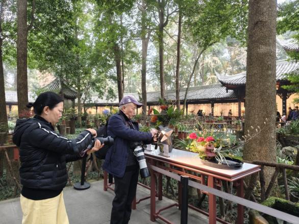 “我们日常随处可见的花花草草,在插花老师的手下变得如此有诗意,而且这次还是专门以杜甫的诗为创作基础,让我们透过花艺更好地理解杜诗。”元旦假期,成都杜甫草堂博物馆内人流如织,四川省第一届“中国式插花”艺术展正在此间精彩亮相。展览以“诗花相和 梅香草堂”为主题,将传统插花、蜡梅盆景与杜甫诗歌文化深度交融,为冬日的草堂晕染出一抹清雅意境,引得游客们驻足欣赏、流连忘返。