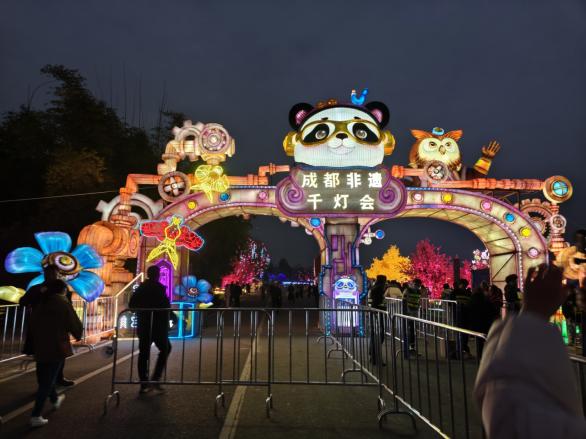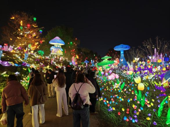 成都国际非遗博览园内灯火璀璨,非遗千灯游园会迎来客流高峰。夜幕降临,园区化身为梦幻之境。30多类精巧灯组渐次点亮。高达数米的昆虫灯组触须微颤,发光的植物与花朵在夜色中摇曳,十二生肖长廊中神话角色栩栩如生,从深海生物到太空探索,从现实世界到奇幻想象,游客穿行其间,仿若步入童话之境。