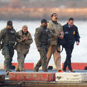 委内瑞拉总统马杜罗当地时间1月5日上午进入纽约南区法院出庭。他和妻子被束带捆住,在全副武装的警卫押送下,从布鲁克林拘留中心被带上直升机前往法院。