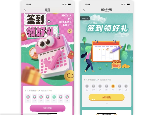 • 日常会员运营:设置 “每日签到领积分”,积分可兑换小礼品或优惠券,培养用户每日登录习惯,形成依赖;