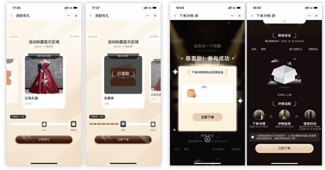 升级功能:满额有礼 + 下单冲榜,互动玩法刺激囤货
