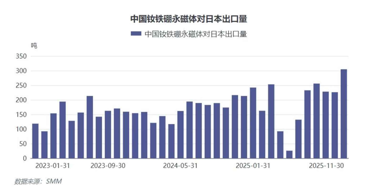 史鑫进一步分析指出,对日出口收紧,将促使以海外市场为辅助支撑的磁材企业重新思考2026年发展路径,企业需重新评估订单转移至其他地区的可行性。