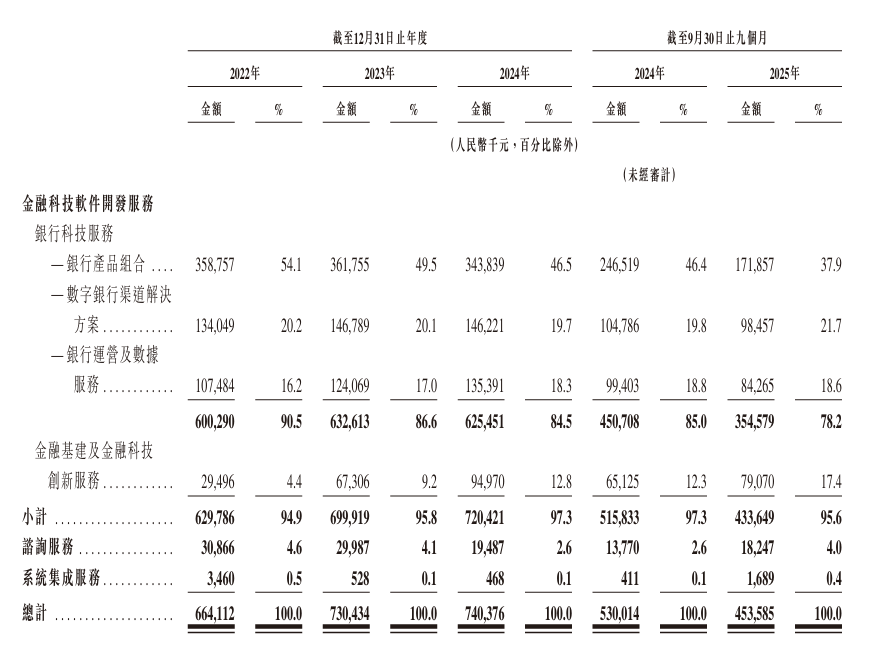 从利润率来看,金融科技软件开发服务的过往毛利率在30%-34%,2025年前三季度增至40.6%,此外咨询服务、系统集成服务毛利率增至28.5%、75.8%。