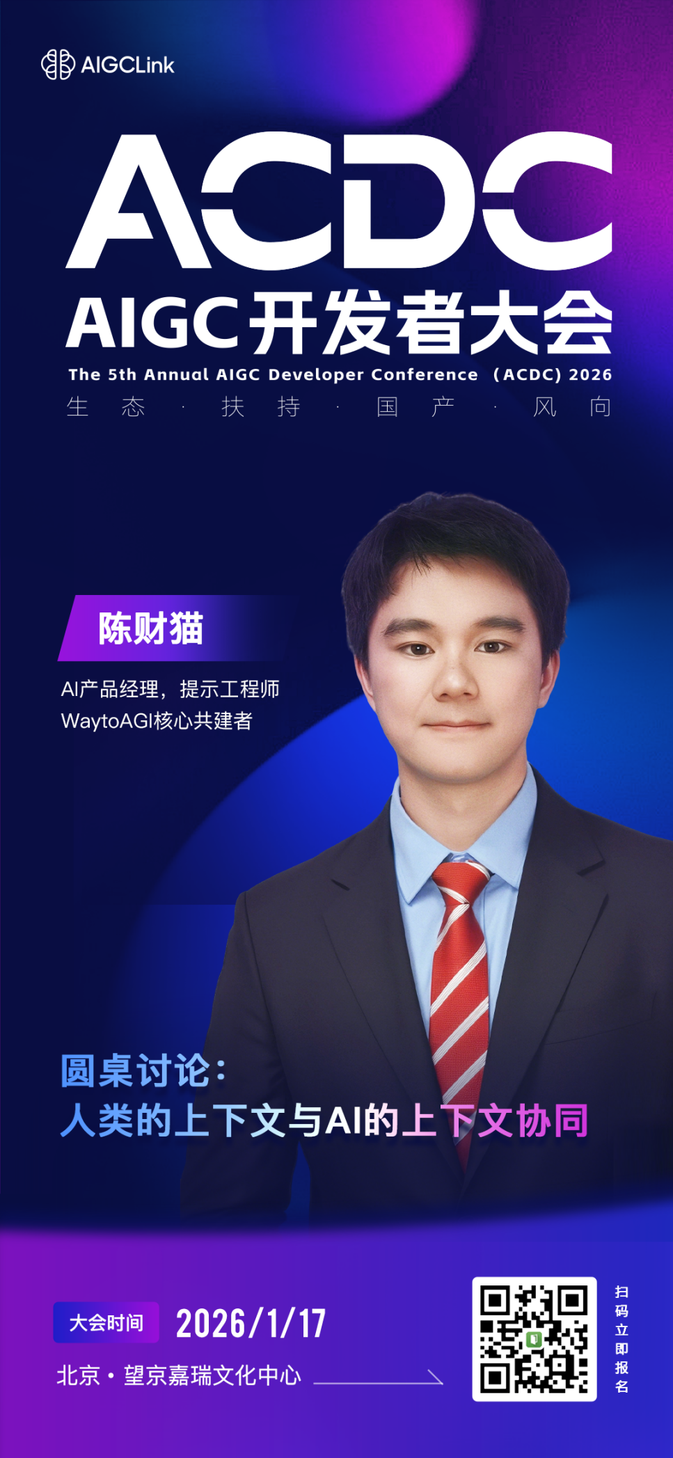 与我们一同,加入这场关于如何与AI更好协作的圆桌对话。ACDC 2026,期待您的到来。1月17日,周六,北京·望京嘉瑞文化中心