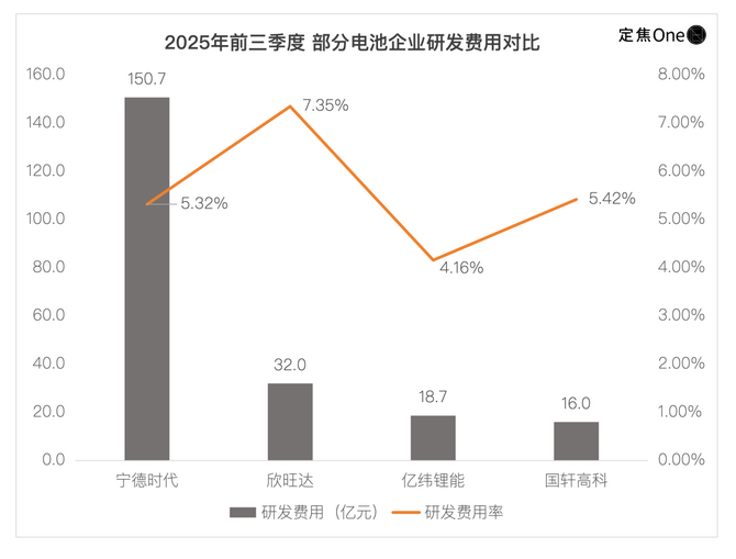 在电池这个资本和技术双密集的行业,今天的利润差距直接决定了明天的技术代差。2025年前三季度,宁德时代的研发投入高达151亿元,而二线厂商普遍仅在“20亿元级别”。