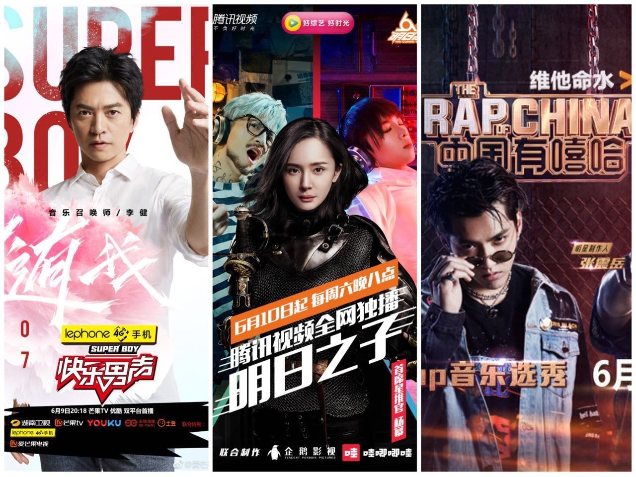 今年夏天,三档即将开播的选秀节目《快乐男声》、《明日之子》和《中国有嘻哈》就将以网络综艺的形式转战视频平台。