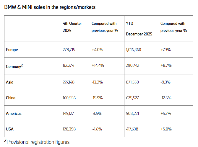 宝马集团1月9日公布,2025年向客户交付车辆总计2,463,715辆,同比增长0.5%,其中电动化车型交付量达642,087辆,较上年增长8.3%,纯电动车型销量也实现小幅增长,全球交付量达442,072辆。数据显示,BMW和MINI去年在中国市场销量为625,527辆,同比下降12.5%。