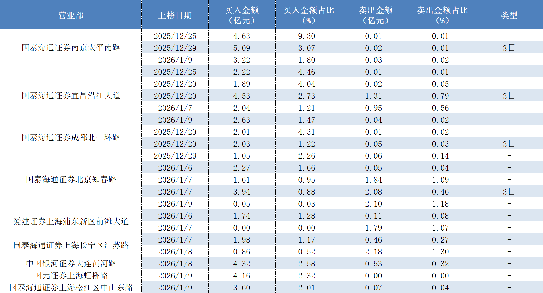 12月29日披露的3日龙虎榜数据显示,作手新一的常用席位国泰海通证券南京太平南路的买入金额为5.09亿元,卖出金额不足200万元;消闲派的常用席位国泰海通证券宜昌沿江大道买入金额为4.53亿元,卖出金额为1.31亿元。