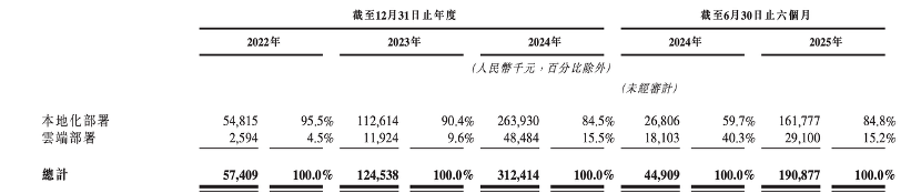 此时许多朋友已经注意到了“云端部署”这个新兴业务,2025上半年其营收占比已经超过15%,乐观派以此认为这将会是智谱的“第二曲线”。