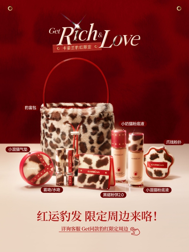 卡姿兰豹红限定的惊喜,远不止彩妆本身,豹富包、爪钱粉扑、发发发夹、豹美眼镜、靓豹镜等周边单品,也是新年完整妆造的点睛之笔。无论是跨年派对上,用发发发夹打造吸睛造型;还是走亲访友时,携豹富包和爪钱粉扑随时补出精致底妆;亦或是以豹美眼镜提升整体造型的时尚格调,都能让新年妆造更具层次感与态度。而藏于细节中的新年祝福,也让每一次造型搭配、每一次化妆时刻,都成为传递好运的仪式。