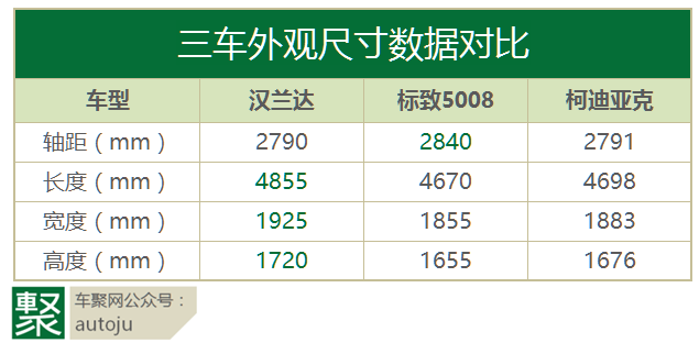 从三车的车身尺寸来看,汉兰达的体积最大,但轴距却最短;其余两车个头类似,5008长度短、轴距最大。客观的说,体积小的车在市内开起来优势还是比较明显的。