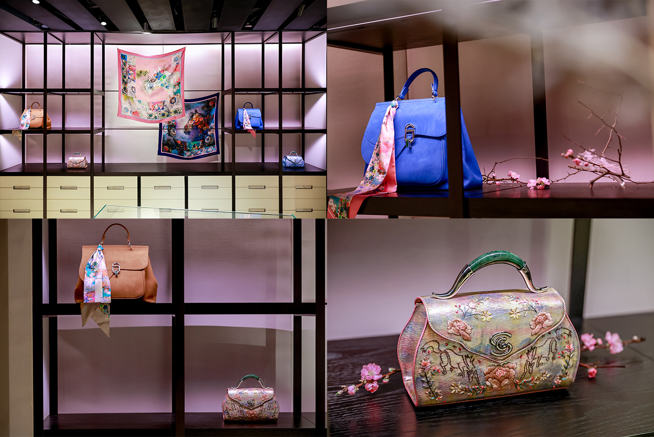 马鞍专属的圆弧线条运用于包型轮廓,结合金属挂扣与层叠结构,展现立体层次感。皮质选用绒毛磨皮、头层磨皮及荔枝花纹,塑造自然随性。将马术装备的经典元素与东方工艺深度织合,每一处细节皆藏匠心。经典玉镯提包包身正面以精湛刺绣技艺呈现马年图腾,勾勒奔马轮廓,叠加参针绣法点缀花卉纹样,多层绣线交织立体肌理,光线折射下呈现渐变纹理光泽。让整体造型更具设计与奢华感。