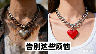 没有专业影棚和模特,吕振凤教学生用豆包、即梦AI等AI工具进行场景合成。“AI生成需要反复调试。”24电商Z2班的郑欣怡分享了一次“翻车”经历:她使用豆包生成项链图,结果项链不是挂在头上,就是换了个样式。经过三四轮指令调整,她终于得到满意结果,再用Photoshop稍加修饰,专业的电商主图便诞生了。