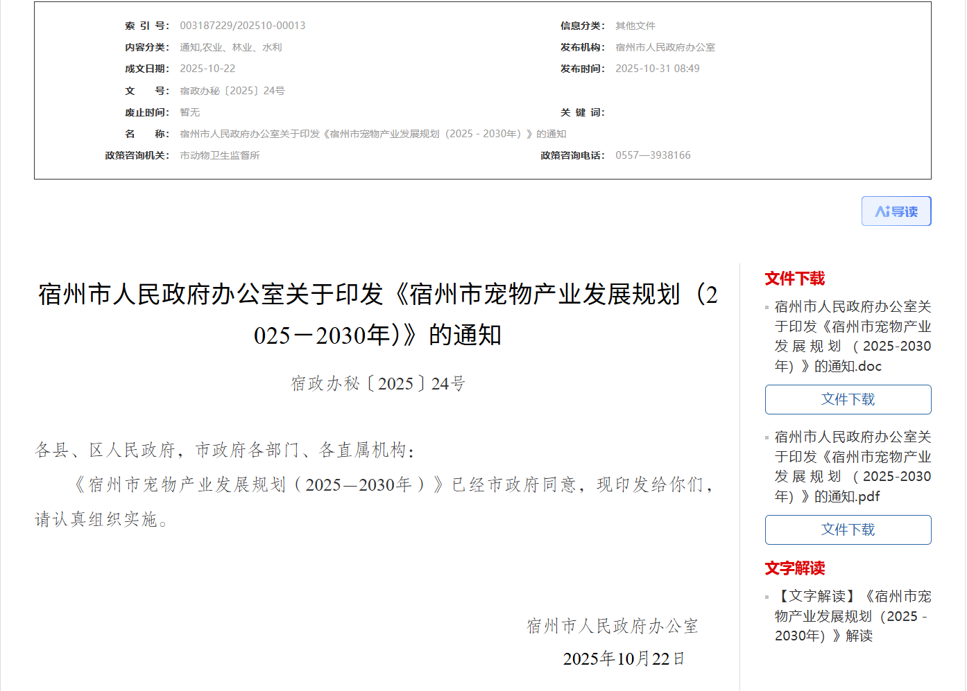 落到安徽,宿州是全省“宠物经济”重点布局的城市之一,正通过政策+资本联合发力。