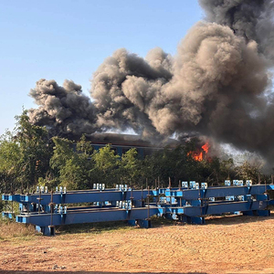 事发时,一台在离地约10米的高架结构上作业的起重机突然倒塌并坠落,其钢结构砸中一列高速驶过的曼谷至乌汶府快速列车,造成列车脱轨并起火。随后救援人员成功控制火势。