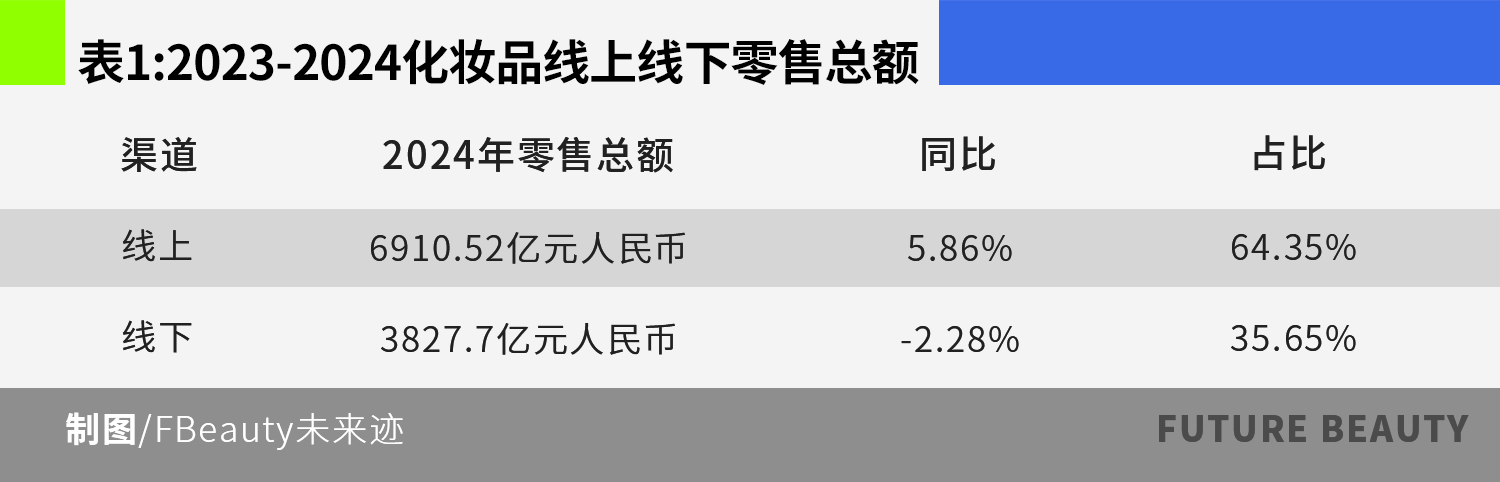 根据中国香妆协会产业研究中心统计,2024年线下渠道化妆品零售总额为3827.7亿元,同比下滑2.28%。占2024年化妆品线上线下全渠道零售总额的35.65%。