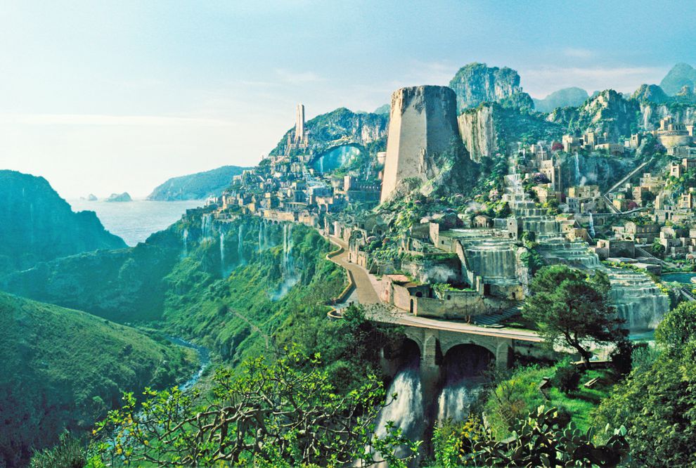 最后所呈现出来的,是实景拍摄和后期处理的合成结果。取景地在意大利的阿玛尔菲海岸,后期再进一步塑造了悬崖、装饰景观和一些建筑的视觉效果。Bonetto说:“我们需要一片白色的、被悬崖包围的海滩作为主战场的场景。如果你看到现实中的海滩和悬崖,就明白不可能在那里拍摄,因为潮水涨得太高了。”