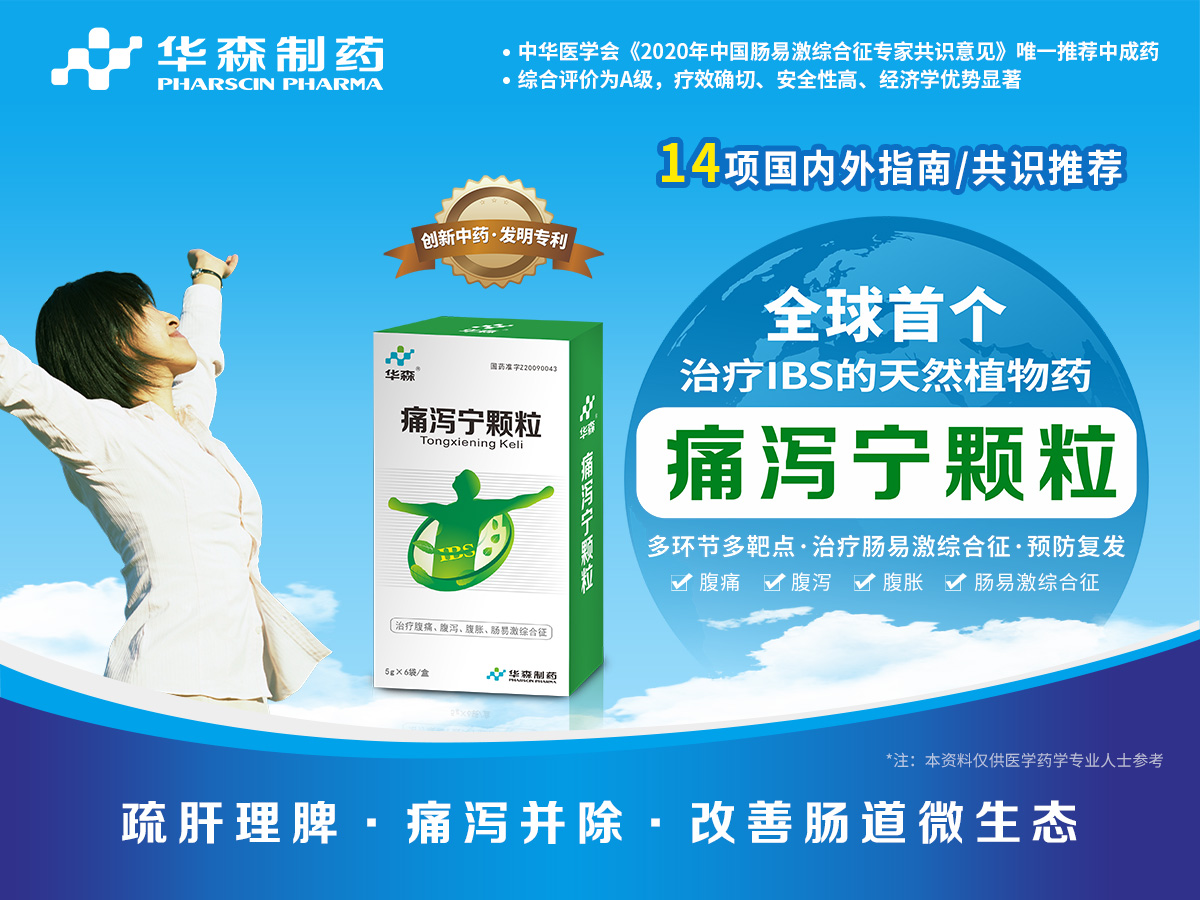 痛泻宁颗粒是首个上市治疗IBS-D的中成药,为中药创新 1.1类新药、国家医保品种,其处方由《景岳全书》引用《丹溪心法》中 “痛泻要方”改良而来,具有柔肝缓急止痛、疏肝行气消胀、理脾运湿止泻的功效,能多环节多靶点治疗肝气犯脾所致的腹痛、腹泻、腹胀、腹部不适等症及IBS-D等肠病,可替代或减少化学药品治疗IBS-D用量,解决目前化药无单一特色药品治疗IBS-D的不足,填补了国家基药目录中无肝气犯脾所致IBS中成药的空白。痛泻宁颗粒是目前治疗IBS-D循证最多、质量最高的中成药,且是中华医学会《2020年中国肠易激综合征专家共识意见》唯一推荐的中成药。