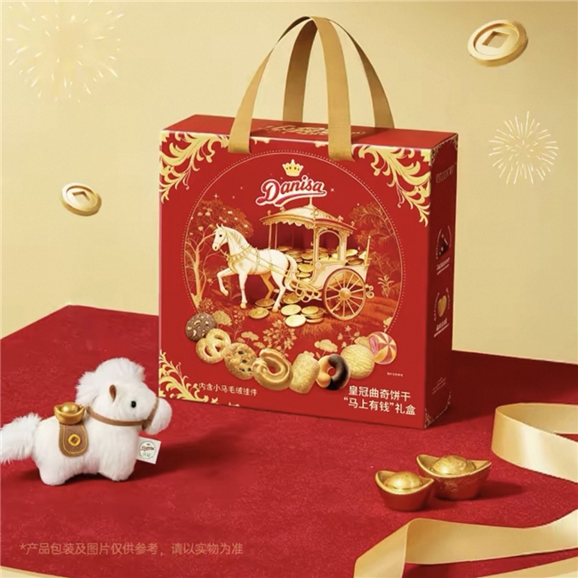 为迎接马年新春,Danisa皇冠还推出了蕴含生肖元素的皇冠曲奇饼干“马上有钱”礼盒573g,以红金配色呈现出精致优雅的新年仪式感。甄选8款曲奇饼干,以优质原料打造酥脆口感。礼盒内附赠小马毛绒挂件周边,礼赠新年“好彩头”,好事在路上,财运马上到!