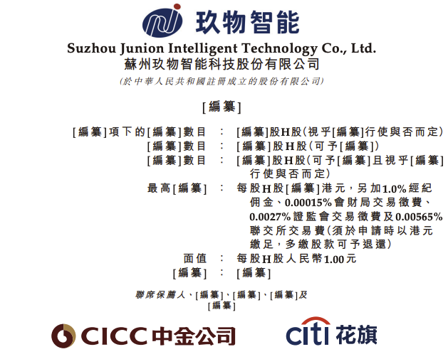 据港交所文件,1月19日,苏州玖物智能科技股份有限公司向港交所递交上市申请,中金公司、花旗为联席保荐人。