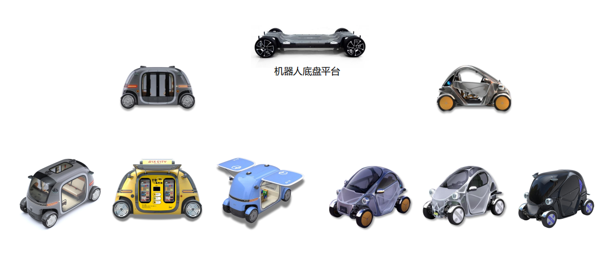 换句话说,在机器人底盘平台之上装配的不再是固定座舱,而是能根据需要切换功能的空间模块,可以是载人的无人驾驶小巴,也可以成为移动便利店、咖啡吧、快递柜,甚至是移动办公舱。