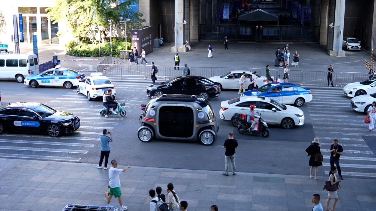 展馆里,AI从生成内容转向解决现实世界的问题,机器人不再只是跳舞翻跟头的炫技表演,而是承担起货物搬运、部件装配、家庭清洁等各种各样的任务。自动驾驶汽车也是物理AI应用中不可或缺的角色。