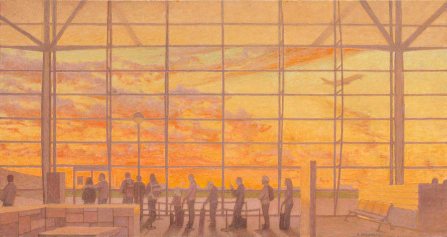 首个项目邀请的是澳大利亚现实主义画家罗伯特·布朗霍(Robert Brownhall),并获得了出人意料的热烈反响,罗伯特在机场拿着铅笔和速写本专心创作的场景被各大媒体争相报道,让这位此前一直安静地画了二十年画的艺术家一炮而红。他也以一贯内敛、温暖的风格完成了自己的机场创作。