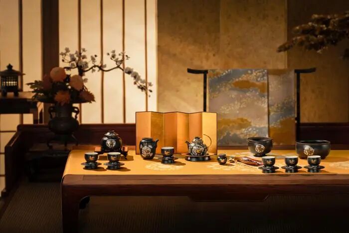 与茶器品牌万仟堂的合作,则是一次“让文物进入生活仪式”的典范。联名打造的“大唐茶宴”系列茶器,从鎏金鹦鹉纹提梁银罐等国宝文物中凝练大唐风华,通过“文物考据-美学凝练-器物再造-生活承载”四位一体的创新路径,深入挖掘文物内涵与精神符号,将历史文化遗产转化为兼具艺术性与实用性的生活美学器物。该系列以卓越的匠心品质荣获2025年中国旅游特色商品大赛金奖。随着丙午马年的临近,全新推出的“舞马衔杯”联名茶器,进一步将文物元素转化为传递佳节祝福的情感载体。