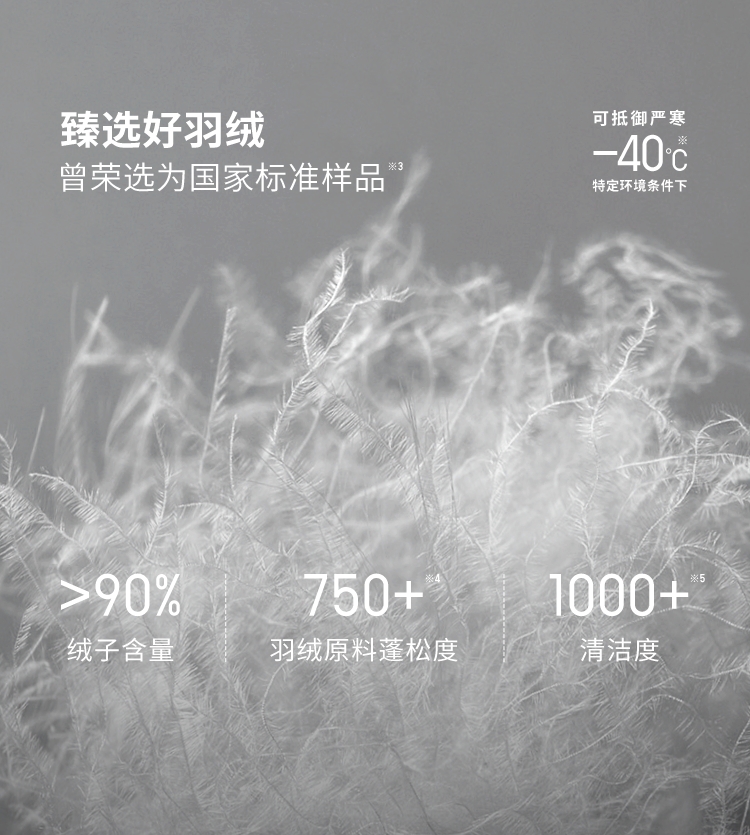 在更极端的场景中,冰雪羽绒系列的逻辑更加直接。它把高充绒量放回“应该出现的地方”:系列最厚款充绒量达到285克,官方标注可应对低至-40℃的严寒环境。这种配置并非为了制造对比,而是明确服务于极寒、长时间户外停留等高风险场景。