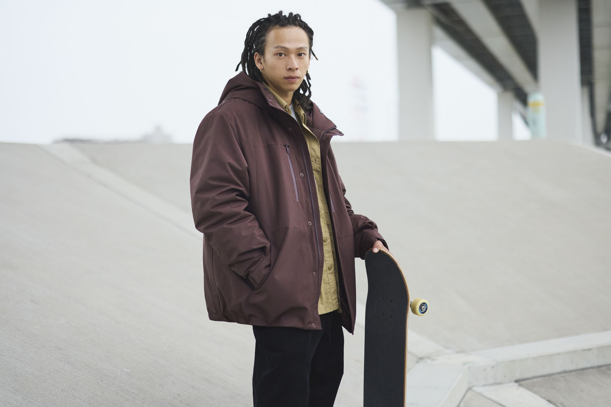 同时,与世界滑雪冠军平野步梦共同研发的「智」暖衣系列,源于对冬季户外活动与日常运动需求的考虑,在设计和材料上更强调动态穿着体验。通过分区结构,将优质羽绒与吸湿发热材料结合,并在背部加入透气网眼设计,回应的是人在移动、出汗以及频繁进出室内外时,如何在保暖与舒适之间取得平衡。