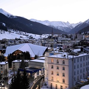 这是1月22日,今年达沃斯年会开幕以来的第三天。走在达沃斯小镇狭窄的街道上,肉眼可见的警力增多了,荷枪实弹的军警在路口徘徊,酒店门前的路障也更加厚重,时有直升机在山谷间盘旋。路上的车也更多了、更挤了——美国人来了。