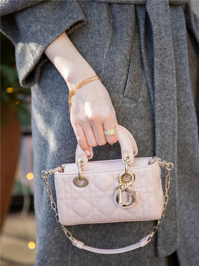 在春节这样一个充满团聚与约会的假期里,这样一款手袋能完美适配从家庭聚餐到浪漫晚餐的各种场景。浅金色饰面的金属 D.I.O.R. 吊饰随着步履轻轻摇曳,不仅是品牌标识,更像是一份随时陪伴的甜蜜信物。赠送这款手袋,仿佛在说:“愿你的每一天,都如这抹粉色般柔美欢愉,充满灵活的惊喜。”