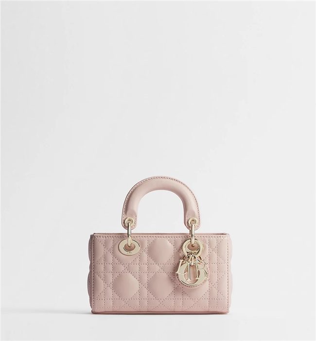 图注:Lady D-Joy超迷你手袋,胭脂粉色羊皮革与藤格纹缉面线交织出甜美气息,浅金色D.I.O.R.吊饰是点睛之笔。