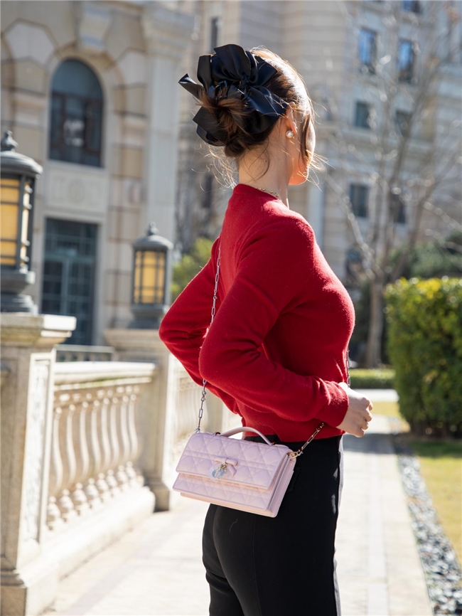这款手袋选用极为迷人的“胭脂粉色”羊皮革制成。这并非张扬的正红,而是一种透着暖意与甜蜜感的粉调,犹如早春初绽的樱花,或是恋人脸颊上的淡淡绯红。它既呼应了春节所需的喜庆氛围,又保留了温柔与雅致,避免了过于直白的节日符号,更显送礼者的独特用心。