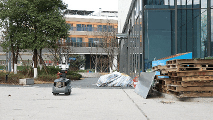 在园区的主干道——一辆轮式无人巡逻车正沿着预设路线平稳巡航,开展园区公共区域的例行巡查。它具备高精度定位和基础避障能力,能自主绕行行人或临时障碍物。