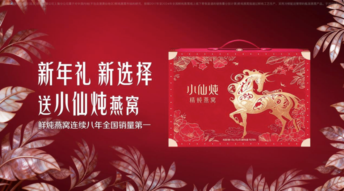 场景适配,情感仪式感拉满:小仙炖的节日限定礼盒很受欢迎,如2025年货节期间,小仙炖夺得全平台健康礼销量第一。面对消费市场的健康礼需求,小仙炖特地打造推出了节日限定燕窝礼盒,采用创新精炖工艺,能常温保鲜180天,更能满足礼赠场景。经市场证明,小仙炖精炖燕窝龙马安康礼盒很好地满足了消费者对高端健康礼的需求,一经推出就受到消费者高度青睐。以在龙年春节首个推出的“祥龙馈岁”礼盒为例,销量同比增长150%。小仙炖更在2025年货节期间夺得全平台健康礼销量第一,其原料可溯、营养扎实、配方纯净的核心优势,让它从众多礼品中脱颖而出,成为春节送礼的优选方案。