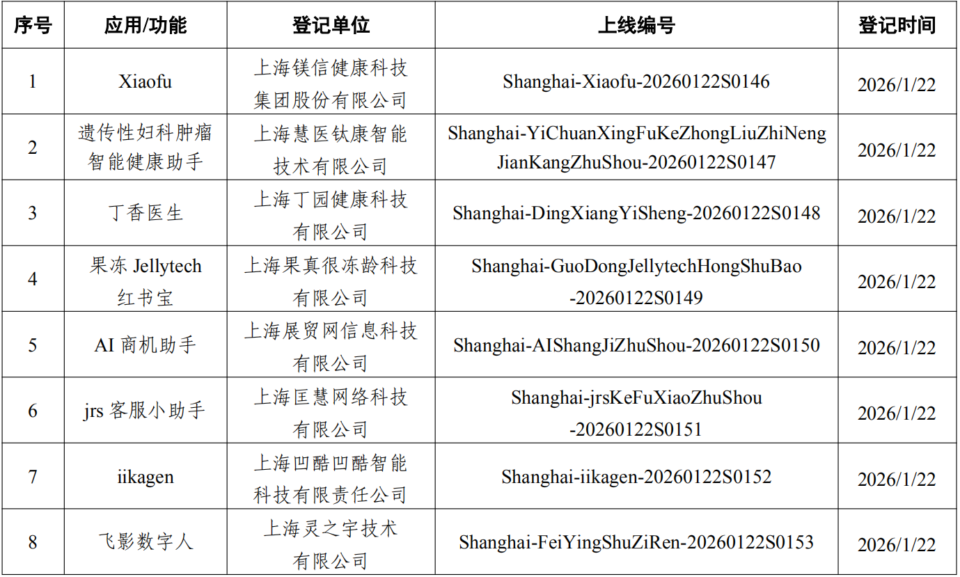 据“网信上海”微信公众号消息,截至1月23日,上海市新增8款已完成登记的生成式人工智能服务,累计已完成153款生成式人工智能服务登记。