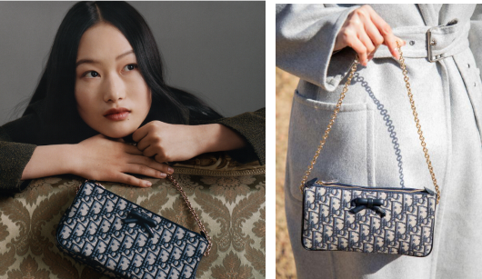 若她更倾向于当代艺术感,喜欢尝试不同风格的混搭,Dior Oblique Bow链条手拿包则会带来更多惊喜。蓝色Oblique印花与皮革蝴蝶结的碰撞,展现了传统与现代的完美平衡。