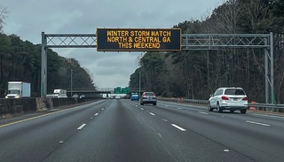 1月23日,在亚特兰大市,一些当地居民驱车前往食品物资分发点,排起长队等候领取免费的食品和饮用水。74岁的退休老人凯伦正是其中一员,她居住在亚特兰大的一条偏远街道上,因此很担忧风暴来袭后道路被封,自己或将被困家中无法出行。