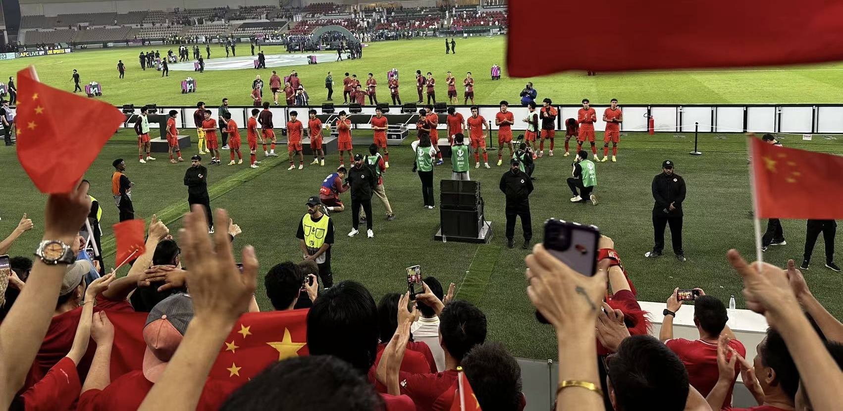 像袁峰这样临时决定奔赴现场的中国球迷并不少。资深球迷Charles向界面新闻表示:“中国球迷真的很有凝聚力。”他观察到,有人从美国、新西兰、东南亚、非洲及中东各地赶至现场为中国队加油。