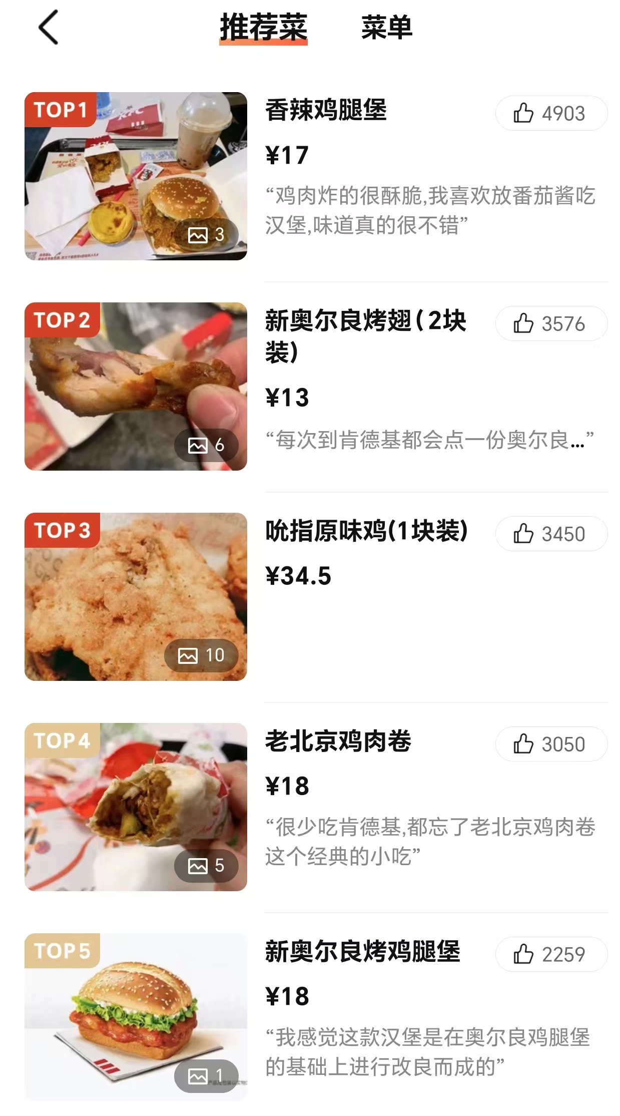 同日,界面新闻就涨价情况致电肯德基一家门店,工作人员表示,“价钱以菜单为准”。随后,界面新闻在大众点评查询肯德基北京东单店菜单,其香辣鸡腿堡目前为17元,新奥尔良烤翅(2块)为13元,吮指原味鸡(1块)34.5元。