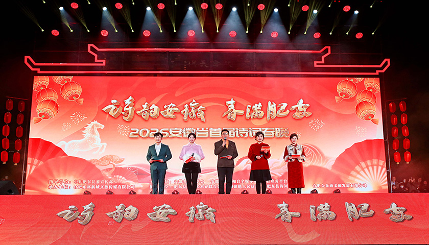 千年文脉润江淮,诗情激荡迎新春。2026年新春之际,“诗韵安徽 春满肥东”安徽省首届诗词春晚于2026年1月24日在肥东圆满落幕。晚会以诗词为媒,融汇徽风皖韵,呈现了一场传统与时代交融的文化盛宴。